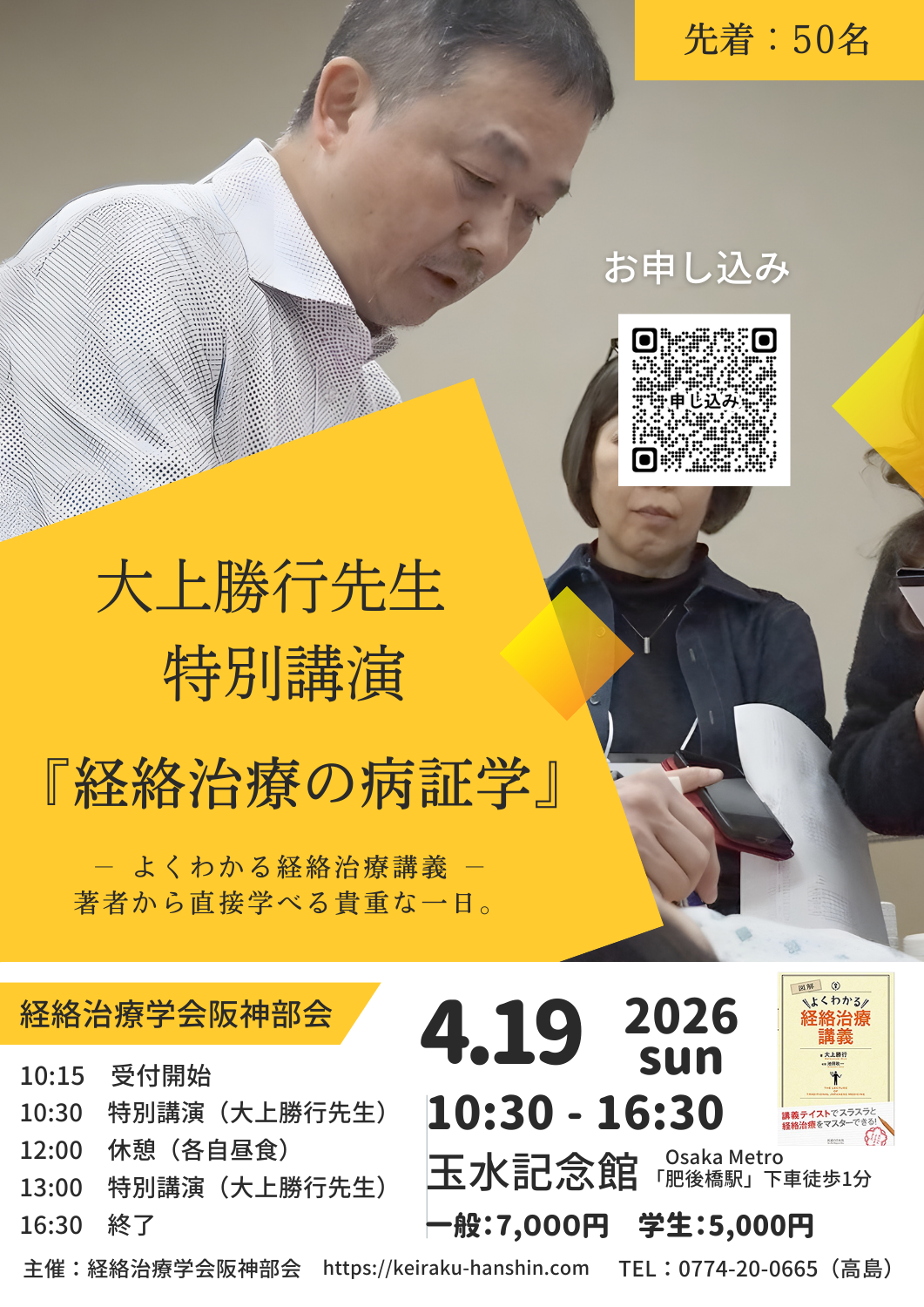 『図解よくわかる経絡治療講義』の著者、大上勝行先生をお招きして特別講演を開催いたします。